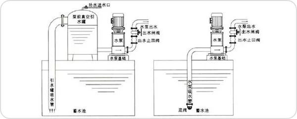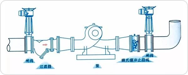另一種是安裝在水泵的后方。這種安裝方法是液面高于水泵的情況下,方便啟停水泵時(shí)不用關(guān)水泵出水閥,特別是對(duì)于母管制水泵系統(tǒng),防止發(fā)生倒流的情況。